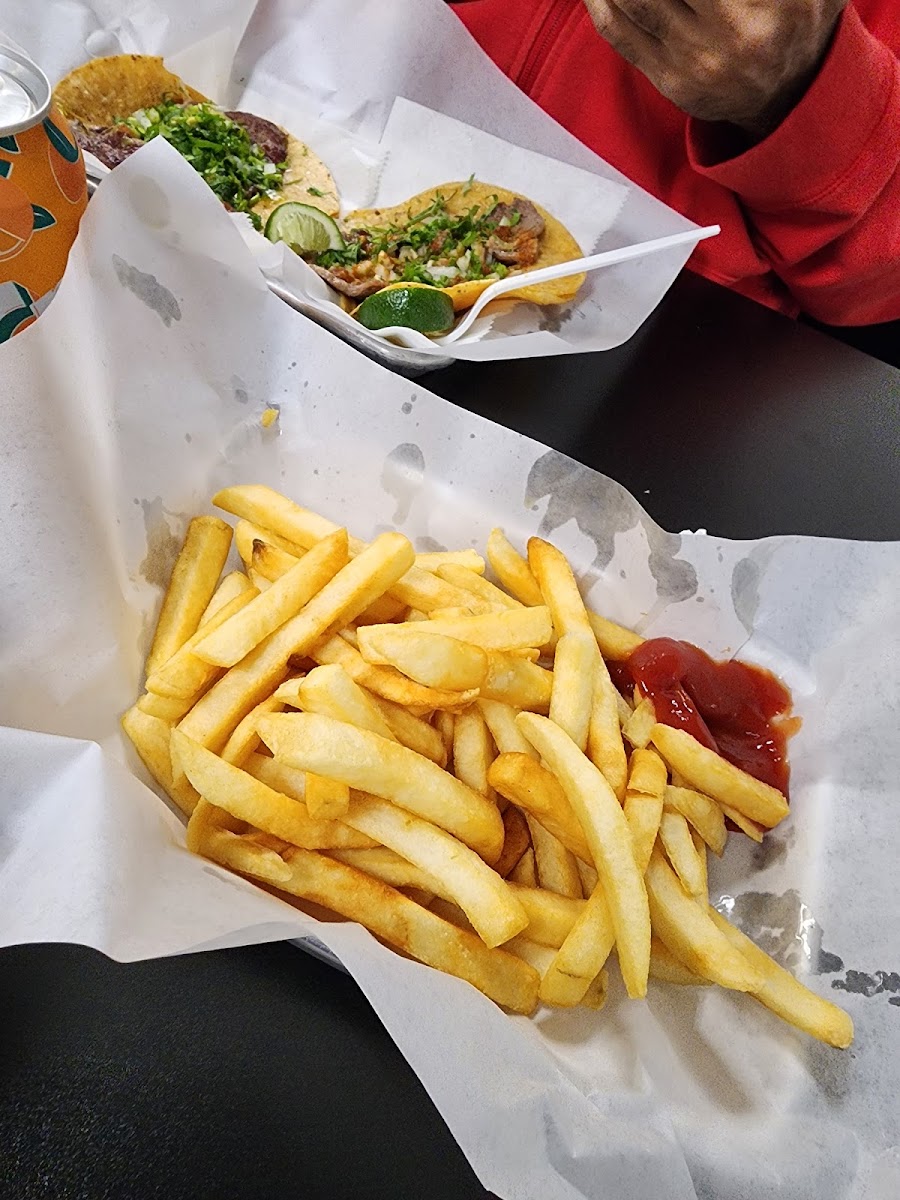 The restaurant specializes in tacos and burritos, with standout offerings like the steak tacos loaded up with cilantro, onions, cheese, and a tangy salsa verde. Those looking for something a bit more indulgent often lean towards the loaded fries topped with steak or the ribeye burrito. The menu also dips into breakfast territory with scrambled eggs and hashbrowns—an option that’s clearly becoming a favorite for those who like to start their day with something hearty yet affordable.